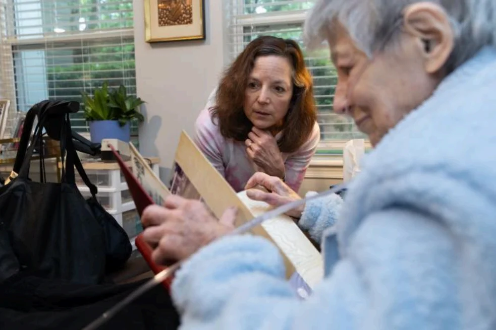 Beverly Kohen Fried visits with her mom, Arlene Kohen. Photo: Jackie Molloy for WSJ